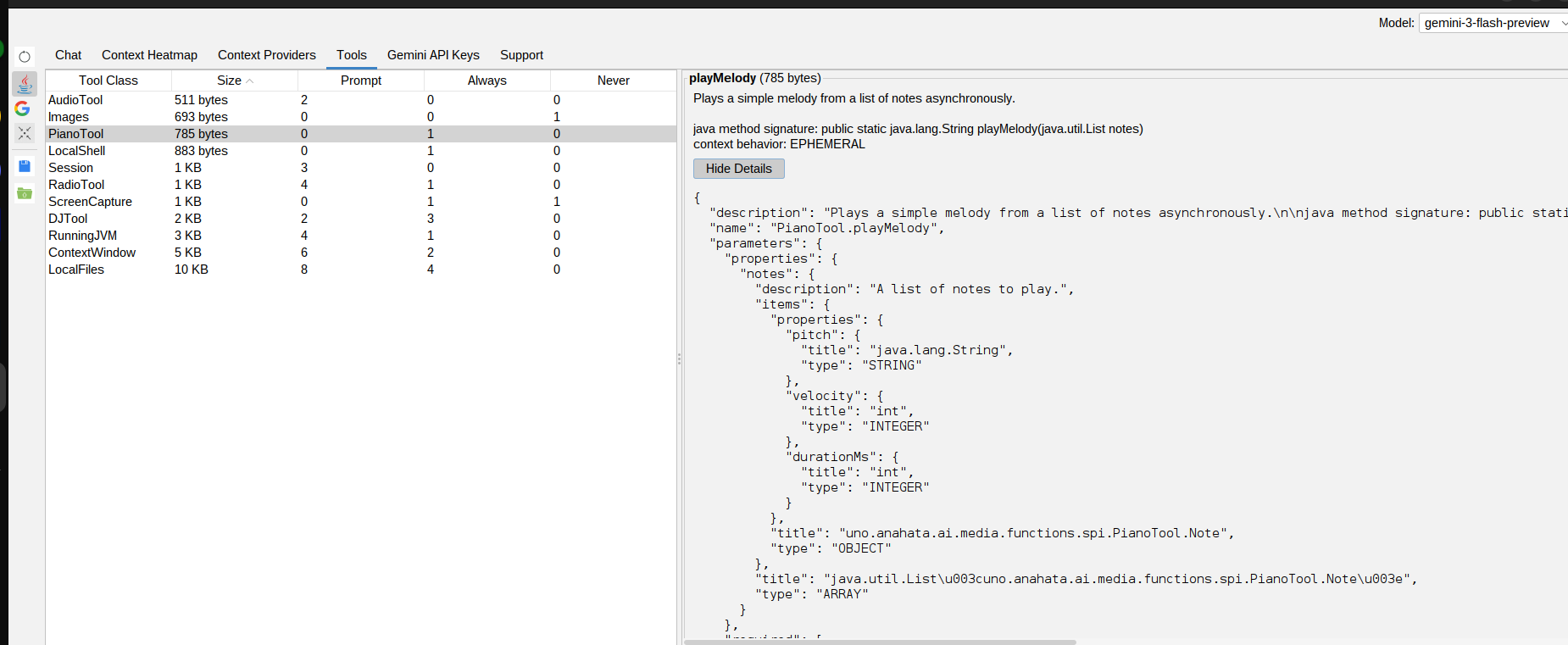 Turn any Java method into an AI-callable function with a single @AIToolMethod annotation. Automatic JSON schema generation included.