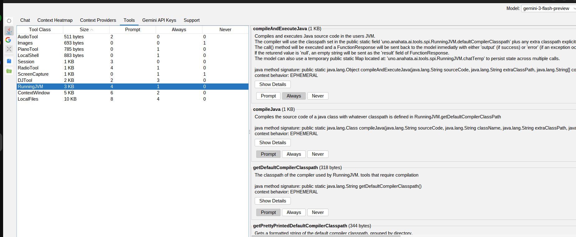 The core RunningJVM tool allows the AI Agent to pull any Java framework in existence from Maven Central or any other website at runtime and execute LLM-generated code immediately.
